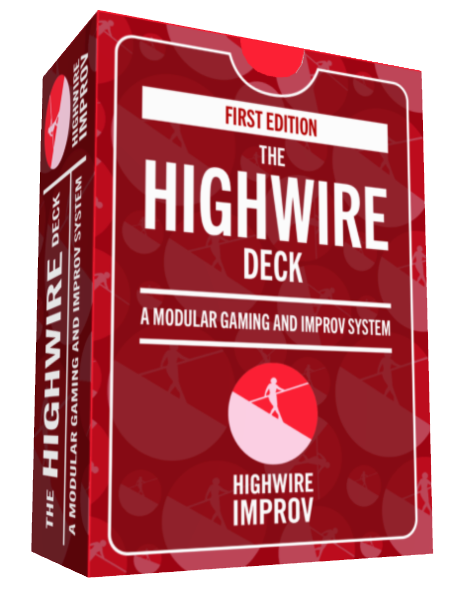 The Highwire Deck is a new modular improv toolbox and gaming system from Highwire Improv and Pacdude Games. Use the Highwire Deck for improv practice, writing inspiration, creative brainstorming and more, and play dozens of your favorite card and board games all in one concise package.